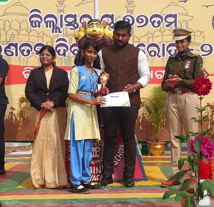 ନୟାଗଡ଼(୨୬/୦୧): ଜିଲ୍ଲା ପ୍ରଶାସନ,ନୟାଗଡ ତରଫରୁ ପୋଲିସ ତାଲିମ ପଡିଆରେ ଆୟୋଜିତ ୭୭ତମ ସାଧାରଣତନ୍ତ୍ର ଦିବସ ୨୦୨୬ ଅବସରରେ ମାନ୍ୟବର ଉଚ୍ଚଶିକ୍ଷା ମନ୍ତ୍ରୀ ସୂର୍ଯ୍ୟବଂଶୀ ସୁରଜ,ନୟାଗଡ ଜିଲ୍ଲାପାଳ ତଥା ଜିଲ୍ଲା ମଜିଷ୍ଟେଟ ମଧୁମିତା ରଥ ଅତିଥି ଭାବରେ ଯୋଗଦେଇ ବିଭିନ୍ନ ପ୍ରତିଯୋଗିତାରେ କୄତିତ୍ୱ ଅର୍ଜ୍ଜନ କରିଥିବା ଛାତ୍ରଛାତ୍ରୀମାନଙ୍କୁ ଟ୍ରଫି ଓ ପ୍ରମାଣ ପତ୍ର ଅର୍ପଣ କରିଥିଲେ। ସେମାନଙ୍କ ମଧ୍ୟରୁ ଓଡ଼ଗାଁ ବ୍ଲକର ଅଧିକାଂଶ ଛାତ୍ରଛାତ୍ରୀ ପୁରସ୍କୃତ ହୋଇ ବାଜିମାତ୍ କରିଛନ୍ତି।ଜିଲ୍ଲାସ୍ତରୀୟ ଇଂରାଜୀ ବକ୍ତୃତା ପ୍ରତିଯୋଗିତାରେ ଓଡ଼ିଶା ଆଦର୍ଶ ବିଦ୍ୟାଳୟ,ଓଡ଼ଗାଁର ନବମଶ୍ରେଣୀ ଛାତ୍ରୀ ଓମ୍ ସ୍ବସ୍ତି ତ୍ରିପାଠୀ ପ୍ରଥମ ସ୍ଥାନ ଅଧିକାର କରି ଟ୍ରଫି ଓ ଯୋଗ୍ୟତା ପ୍ରମାଣପତ୍ର ଗ୍ରହଣ କରିଥିବା ବେଳେ ଉକ୍ତ ବିଦ୍ୟାଳୟର ଅନ୍ୟତମ ଛାତ୍ରୀ ନବମଶ୍ରେଣୀର କୀର୍ତ୍ତିଅର୍ଜିତା ଦ୍ୱିତୀୟସ୍ଥାନ ଓ କଣ୍ଠସଂଗୀତରେ ସାଇସିଦ୍ଧି ମିଶ୍ର ତୃତୀୟ ସ୍ଥାନ , ଓଡ଼ିଆ ବକ୍ତୃତାରେ ଦ୍ୱିତୀୟ ଶ୍ରେଣୀର ଛାତ୍ରୀ ପ୍ରତୀକ୍ଷା ସାହୁ ପ୍ରଥମସ୍ଥାନ, ବ୍ଲକ୍ କଲୋନୀ ସରକାରୀ ବିଦ୍ୟାଳୟ ଏବଂ ଆୟୁଷ୍ମାନ୍ ବେହେରା ଓ ଜୀବନ ନାୟକ, ସରକାରୀ ଉଚ୍ଚ ବିଦ୍ୟାଳୟ ଗିରିଡିପଲ୍ଲୀ କଣ୍ଠସଂଗୀତରେ ଦ୍ୱିତୀୟସ୍ଥାନ , ଆଦିତ୍ୟ ମିଶ୍ର ସରକାରୀ ପ୍ରାଥମିକ ବିଦ୍ୟାଳୟ ମକରପଦା କୌତୁକ ପୋଷାକରେ ଦ୍ୱିତୀୟ ସ୍ଥାନ , ଇଂରାଜୀ ବକ୍ତୃତା କନିଷ୍ଠ ବିଭାଗରେ ସୂତପା ମହାପାତ୍ର କବିସୂର୍ଯ୍ୟ ସଦାନନ୍ଦ ବ୍ରହ୍ମା ପବ୍ଲିକ ସ୍କୁଲ ଭିକାରିପଡା ଯୋଗ୍ୟତା ପ୍ରମାଣ ପତ୍ର ପାଇ ପ୍ରଶଂସିତ ହୋଇଛନ୍ତି ।ରିପୋର୍ଟ: ସନାତନ ମହାକୁଡ଼।