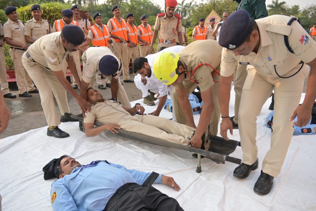 ସିମୁଲେଟେଡ୍ ଜରୁରୀକାଳୀନ ପରିସ୍ଥିତିରେ ଦ୍ରୁତ ସ୍ଥାନାନ୍ତର ପ୍ରକ୍ରିୟା ଏବଂ ପରେ ଏକ ପର୍ଯ୍ୟାୟକ୍ରମେ ଅଗ୍ନିକାଣ୍ଡ ଘଟଣା ଅନ୍ତର୍ଭୁକ୍ତ ଥିଲା। ଅଗ୍ନିଶମ ଏବଂ ଉଦ୍ଧାର ଦଳଗୁଡ଼ିକ ବ୍ୟବସ୍ଥିତ ସ୍ଥାନାନ୍ତର, ସନ୍ଧାନ ଏବଂ ଉଦ୍ଧାର କାର୍ଯ୍ୟ, ଅଗ୍ନି ଦମନ କୌଶଳ ଏବଂ ପ୍ରଭାବିତ ବାସିନ୍ଦାଙ୍କ ନିରାପଦ ପରିଚାଳନା ପ୍ରଦର୍ଶନ କରିଥିଲେ। ସମ୍ଭାବ୍ୟ ବିପଦକୁ କମ କରିବା ଏବଂ ସୁରକ୍ଷା ସୁନିଶ୍ଚିତ କରିବା ପାଇଁ ସୁଗମ ସମନ୍ୱୟ, ତୁରନ୍ତ ଯୋଗାଯୋଗ ଏବଂ ଦ୍ରୁତ ପ୍ରତିକ୍ରିୟା ଉପରେ ଗୁରୁତ୍ୱ ଦିଆଯାଇଥିଲା।