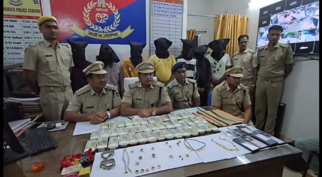 ନବରଙ୍ଗପୁର ଜିଲ୍ଲା ଉମରକୋଟ ଥାନା ଅଧୀନ କୋଚନିଆମ୍ବା ଗ୍ରାମରେ ଗତ ଫେବ୍ରୁଆରୀ 22/02/26 ମଧ୍ୟ ରାତ୍ରିରେ ବେକରେ ଭୁଜାଲି ଲଗାଇ ହାତ ଗୋଡ଼ ବାନ୍ଧି 70 ଲକ୍ଷ ନଗଦ ଟଙ୍କା ସହ ସୁନା ଆଲଙ୍କାର ଲୁଟ ଘଟଣାର ପର୍ଦାଫାସ।21 ଲକ୍ଷରୁ ଉର୍ଦ୍ଧ ଟଙ୍କା, ସହ ସୁନା ରୁପା ଅଳଙ୍କାର ,ଡକାୟତି ରେ ବ୍ୟବହୃତ କାର, ସ୍କୁଟି ଜବତ କରିବା ସହ ଏହି ଡକାୟତି ରେ 7 ଜଣ ଆନ୍ତଜିଲ୍ଲା ଜିଲ୍ଲା ଡକାୟତକୁ ଗିରଫ କରିଥିବା ପ୍ରେସ ମିଟ ମାଧ୍ୟମରେ ସୂଚନା ଦେଲେ ନବରଙ୍ଗପୁର ଅତିରିକ୍ତ ଆରକ୍ଷୀ ଅଧିକ୍ଷକ ଆଦିତ୍ୟ ସେନ।