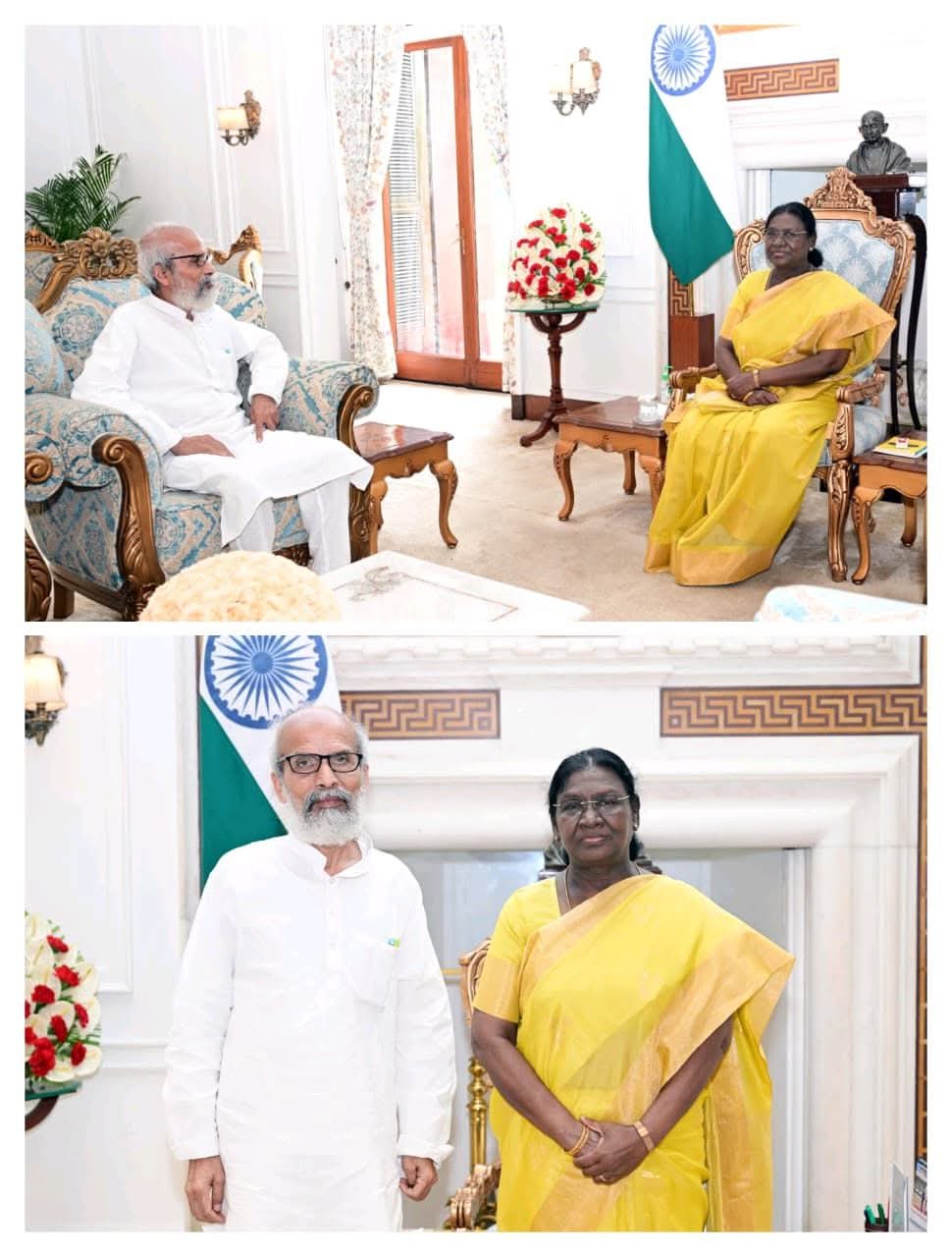 ଆଜି ମାନ୍ୟବର ରାଷ୍ଟ୍ରପତି ଶ୍ରୀମତୀ ଦ୍ରୌପଦୀ ମୁର୍ମୁଙ୍କୁ ରାଷ୍ଟ୍ରପତି ଭବନରେ ସୌଜନ୍ୟମୂଳକ ସାକ୍ଷାତ କରି ଓଡ଼ିଶାର ବିକାଶ ସମ୍ପର୍କରେ ଆଲୋଚନା କଲି। ଓଡ଼ିଶାର ବରପୁତ୍ର ଉତ୍କଳ ଗୌରବ ସ୍ୱର୍ଗତ ମଧୁସୂଦନ ଦାସ ଏବଂ ଉତ୍କଳମଣି ପଣ୍ଡିତ ଗୋପବନ୍ଧୁ ଦାସ ଓଡ଼ିଶା ପ୍ରଦେଶ ଗଠନ, ଓଡ଼ିଆ ଅସ୍ମିତାର ସୁରକ୍ଷା, ଓଡ଼ିଶାର କଳା, ସାହିତ୍ୟ, ଶିଳ୍ପ ଓ ସଂସ୍କୃତିର ସଂରକ୍ଷଣ, ସମ୍ବର୍ଦ୍ଧନ, ପ୍ରଚାର-ପ୍ରସାର, ସ୍ୱାଧୀନତା ଆନ୍ଦୋଳନ ଓ ଦୁର୍ଗତ ମାନବର ସେବା ଆଦି ବହୁବିଧ କ୍ଷେତ୍ରରେ ଅସାଧାରଣ ଯୋଗଦାନ କରିଥିବାରୁ, ଏହି ଦୁଇଜଣଙ୍କ ମଧ୍ୟରୁ କୌଣସି ଜଣଙ୍କୁ ‘ଭାରତ ରତ୍ନ’ ଉପାଧି ପ୍ରଦାନ ପାଇଁ ନିବେଦନ କଲି। ଏହି ବିଷୟରେ ବିଚାର କରିବାକୁ ମାନ୍ୟବର ରାଷ୍ଟ୍ରପତି ମହୋଦୟା ପ୍ରତିଶ୍ରୁତି ଦେଲେ। ରାଷ୍ଟ୍ରପତି ମହୋଦୟାଙ୍କୁ ଅଶେଷ କୃତଜ୍ଞତା🙏🏻।