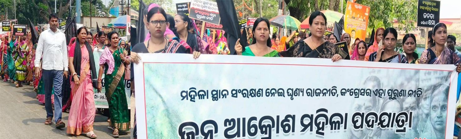 ତିହିଡି, ୨୫.୦୪: ବିଜେପି ସାହାଡ଼ାସୁନ୍ଦରୀ ମଣ୍ଡଳ ପକ୍ଷରୁ ଜନ ଆକ୍ରୋଶ ମହିଳା ପଦଯାତ୍ରା ଅନୁଷ୍ଠିତ ହୋଇଯାଇଛି । ଭାଟପଡା ଡପଞ୍ଚାୟତ କାର୍ଯ୍ୟାଳୟରୁ ବାହାରି ବ୍ଲକ କାର୍ଯ୍ୟାଳୟ ପର୍ଯ୍ୟନ୍ତ ମୁଣ୍ଡରେ କଳାପଟି ଓ କଂଗ୍ରେସ ତଥା ଇଡିମେଣ୍ଟ ବିରୋଧରେ ଫ୍ଲାକାର୍ଡ ଧରି ନାରାବାଜି କରାଯାଇଥିଲା । କେନ୍ଦ୍ର ସରକାରଙ୍କ ଆଗତ ମହିଳା ସଂରକ୍ଷଣ ବିଲ ପାରିତ ନହେବା ପ୍ରତିବାଦରେ ଏପରି ପ୍ରତିବାଦ କରାଯାଇଥିଲା । ସେଠାରେ ଏକ ପଥପ୍ରାନ୍ତ ପ୍ରତିବାଦ ସଭା ଅନୁଷ୍ଠିତ ହୋଇଥିଲା ।ପୂର୍ବତନ ଜିଲା ପରିଷଦ ଉପାଧ୍ୟକ୍ଷା ରଞ୍ଜିତା ସ୍ୱାଇଁ, ପୂର୍ବତନ ଭାଜପା ଜିଲା ମହିଳା ସଭାନେତ୍ରୀ କଳ୍ପନା ଜେନା, ସରପଞ୍ଚ ପୁଷ୍ପାଞ୍ଜଳି ଲେଙ୍କା, ପୂର୍ବତନ ସରପଞ୍ଚ ଅଲିଳପ୍ରଭା ରାଉଳ, ଝରଣା ଜେନା ଓ ରୀନାରାଣୀ ସ୍ୱାଇଁ ପ୍ରମୁଖ ଯୋଗଦେଇ ୩୩ ପ୍ରତିଶତ ମହିଳା ସଂରକ୍ଷଣ ବିଲକୁ ବିରୋଧ କରିଥିବା ବିଜେଡ଼ି ଓ କଂଗ୍ରେସକୁ ଭତ୍ସନା କରିବା ସହ ବିଲକୁ ପାରିତ କରିବା ପାଇଁ ଦାବି ଜଣାଇଥିଲେ । ସାଂସଦଙ୍କ ପ୍ରତିନିଧି ସୀତାକାନ୍ତ ନାୟକ, ମଣ୍ଡଳ ସଭାପତି କେଶବ ବେହେରା, ଉମାକାନ୍ତ ଦାସ, ସିଲୁ ବେହେରା, ଗଣେଶ କର, ମାନସ ନାୟକ, ସନ୍ୟାସୀ ବେହେରା, ଅମୀୟ ମହାନ୍ତି, ସୁରେଶ ପାତ୍ର, ସରୋଜ ନାୟକ, ଦେବେନ୍ଦ୍ର ମହାନ୍ତି, ରବିନ୍ଦ୍ର ଶତପଥି, ବରିଷ୍ଠ ନେତା ରଘୁନାଥ ପାତ୍ର, ଅଜୟ ମହାପାତ୍ର, ସରପଞ୍ଚ ଶୁଭ୍ର ନାରାୟଣ ସେଠୀ, ସମିତିସଭ୍ୟ ଶୁକଦେବ ମଲିକ, ରବିନ୍ଦ୍ର ଶତପଥୀ, ଉମାକାନ୍ତ ଦାସ, ସରୋଜ ନାୟକ, ଦେବେନ୍ଦ୍ର ମହାନ୍ତି, ମାନସ ନାୟକ, ଜୟପ୍ରକାଶ ବେହେରା, ଗଣେଷ କର, ସନ୍ୟାସୀ ବେହେରା, ଅମୀୟ ମହାନ୍ତି, ସୁରେଶ ପାତ୍ର, ପୁଷ୍ପାଞ୍ଜଳୀ ଲେଙ୍କା, ଅଲୀଳପ୍ରଭା ରାଉଳ, ରୀନା ସ୍ୱାଇଁ, କଳ୍ପନା ନାୟକ ଓ ଝରଣା ଜେନା ପ୍ରମୁଖ ଉପସ୍ଥିତ ଥିଲେ ।